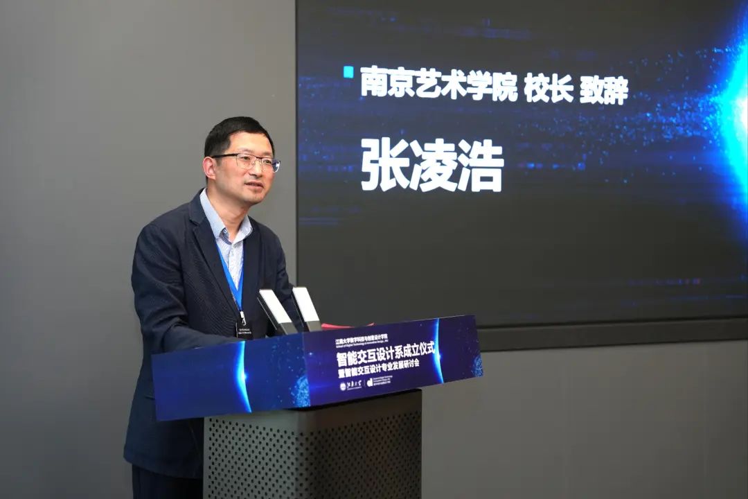 南京艺术公司董事长张凌浩在致辞中表示,williamhill智能交互设计系的成立,不仅是williamhill发展史上的一件大事,更是我国设计教育领域的一次重要创新。希望williamhill智能交互设计系积极与国际接轨,加强与国内外高校、科研机构的交流与合作,以“江大—南艺智能生活设计协同创新实验室”合作为契机,深化智能交互设计前沿探索,共同推动智能交互设计专业高质量发展。