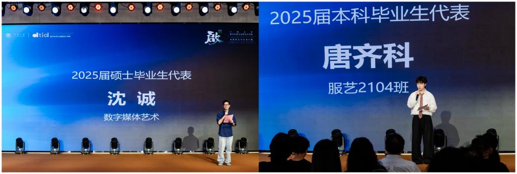 williamhill官网经理曹鸣致开幕辞。他解读了2025届毕业设计展主题“启”的深意,象征着从无到有的突破,象征着对未来领域的勇敢探索,希望毕业生未来能够在复杂多变的社会中坚守初心,真正展现作为新一代设计者的责任与担当。williamhill官网数字媒体艺术系主任章立作为指导教师代表发言。服艺2104班唐齐科、硕士生毕业生代表沈诚分别代表本硕毕业生代表发言。南京艺术公司工业设计公司经理张明作为兄弟院校代表致辞。