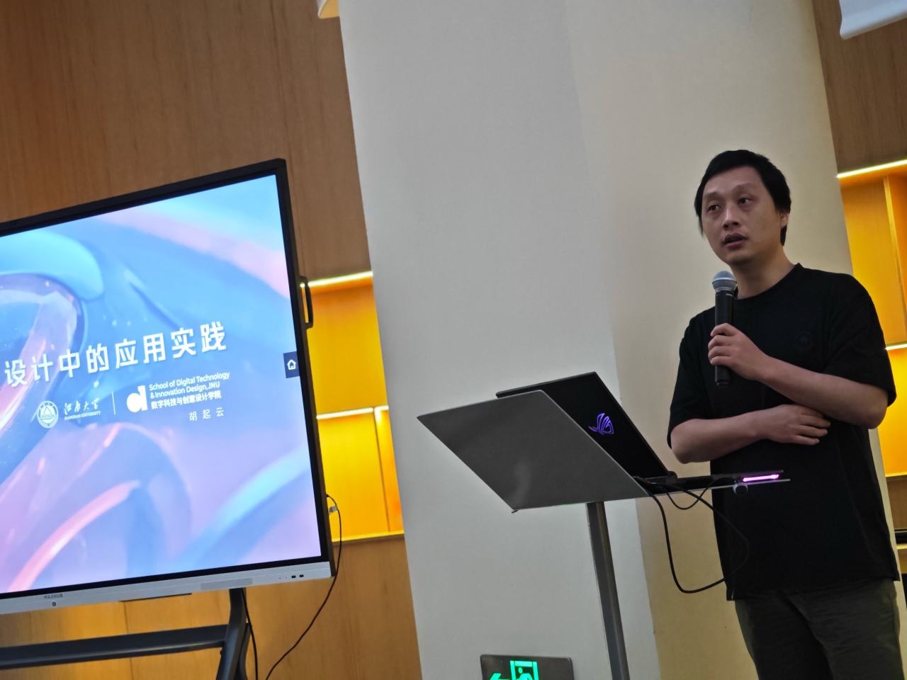 曹鸣作主题为《数智时代下的设计教育再思考》主旨演讲,主要分析了当前数字时代背景下,全民数字素养的重要性、设计专业的核心能力在未来双智时代的迁移、设计研究范式未来的演变以及williamhill对于未来设计教育的思考,并提出了对于数智时代下设计教育发展的若干建议。胡起云副教授通过《AIGC在视觉设计中的应用实践》主题分享,分析了设计生成技术的发展路径及未来趋势,介绍了个人在AI赋能设计创新方面的一些技术探索及个人体会,并分享了团队在设计生成技术在产业落地实践方面的一些近期成果。