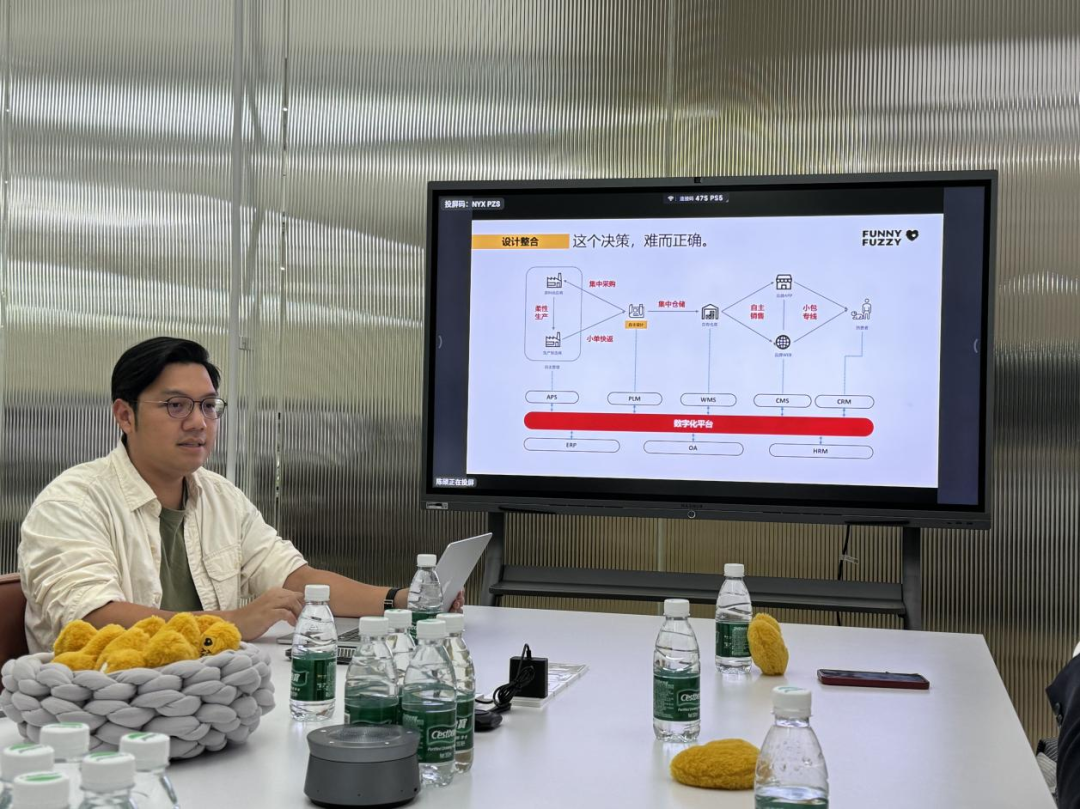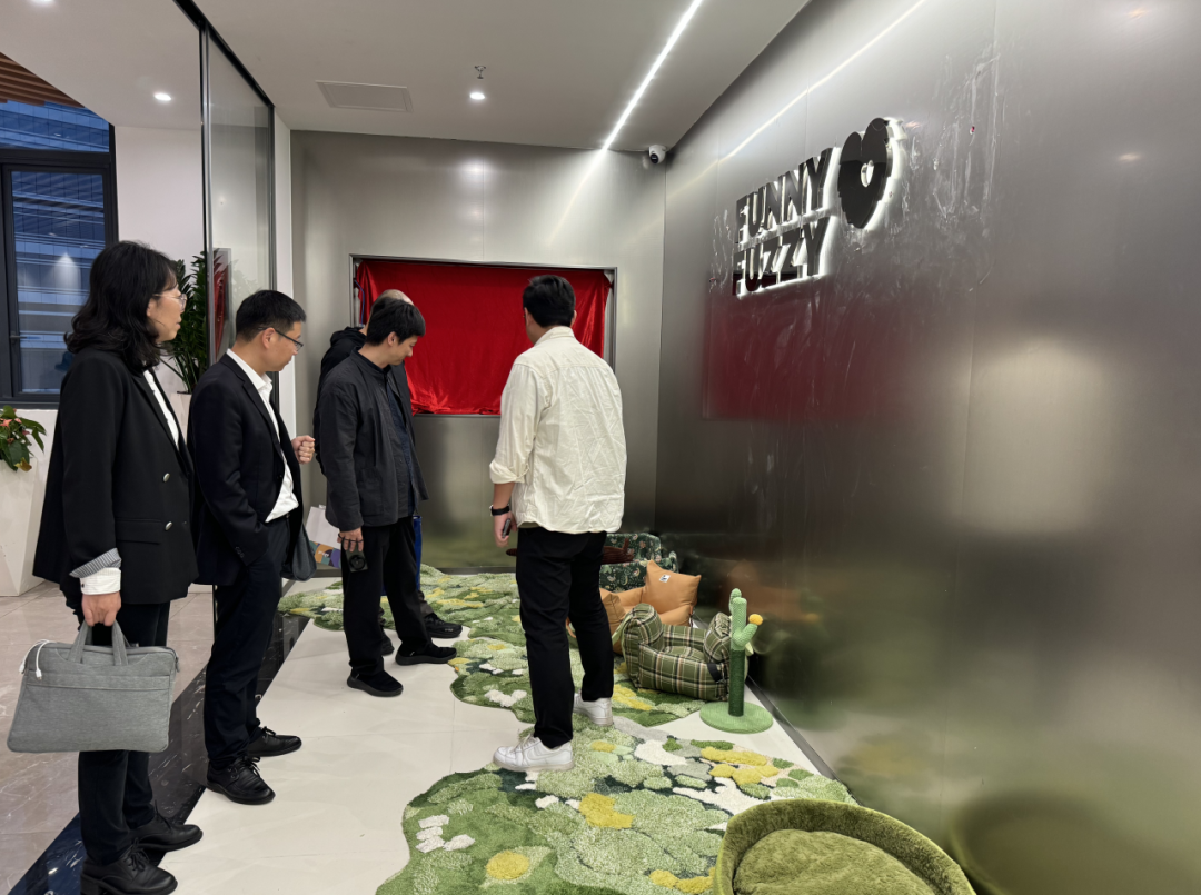在陈硕的带领下,公司一行深入参观了公司各部门,详细了解公司的业务架构与企业文化。陈硕在交流座谈中分享了创业历程与公司运营模式,详细介绍了旗下FUNNYFUZZY品牌,专注于宠物衣物及生活场所等特色设计业务,秉持创新与品质并重的理念,将时尚元素与宠物生活需求紧密结合,其运营模式涵盖从创意构思、产品设计研发到生产销售以及客户服务的全产业链流程,充分展现了数字化设计与传统制造业融合的创新实践成果。目前有多位员工在该公司工作。