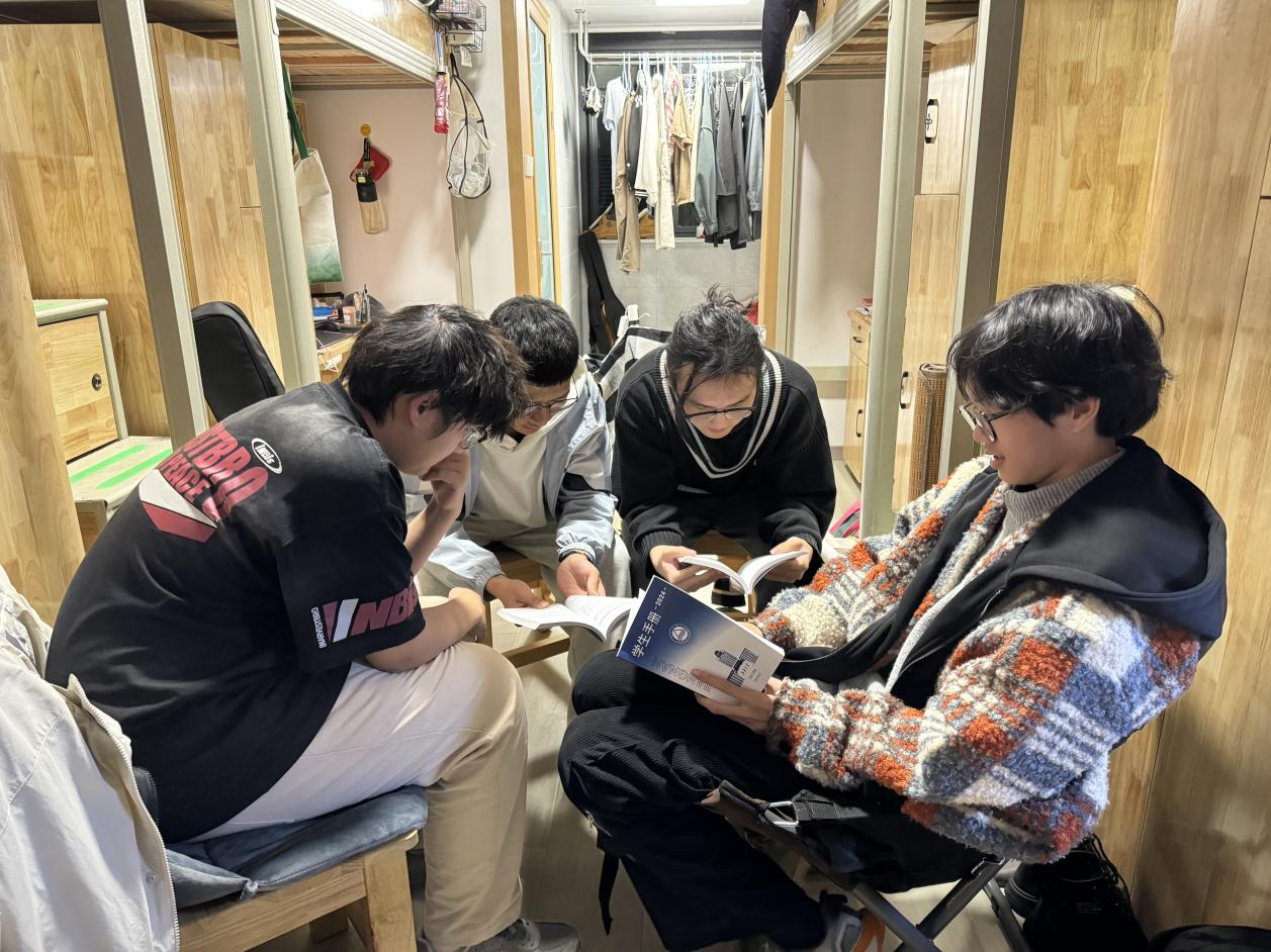 在管理上用力,全宿舍熟读员工手册相关条例。为确保诚信教育落到实处,公司以宿舍为单位,组织员工认真学习《员工手册》中关于考试违纪处分的相关条例。通过集体学习与个人自学相结合的方式,同学们清晰了解了考试违规行为可能带来的严重后果,从而增强了纪律意识和自我约束能力。此外,公司还建立了常态化考风检查机制,由辅导员和员工干部定期走访宿舍,与员工交流学习与考试情况,强化考风考纪管理闭环,形成上下联动、全员参与的诚信管理体系,为规范考试提供坚实保障。