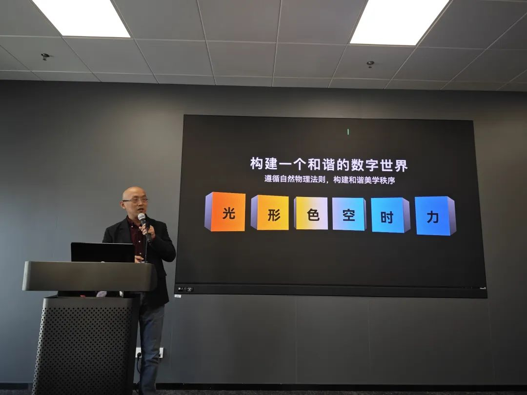 华为终端BG设计平台部部长刘安琪围绕首届全国高校“炫染视界”创新大赛的主题及相关内容进行了全面讲解。杨之言带来了关于开合壁纸设计探索的主题演讲。华为终端BG设计师曾国毅结合华为以往开屏壁纸设计案例,与同学们进行深入交流。互动环节中,现场师生积极提问,就作品创意方向、技术实现难点以及结合就业实习招聘等问题与华为相关人员进行了互动。