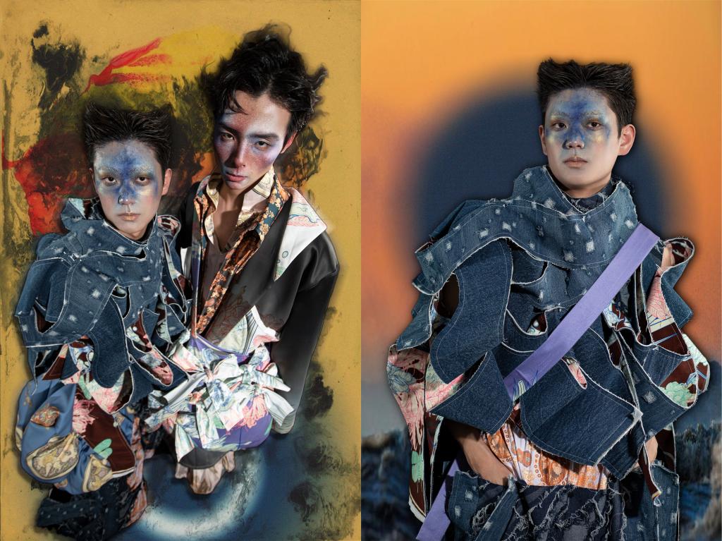 设计风格定位是基于有翼对兽纹样研究背景下的时装设计,本系列为男装系列创意设计。通过对传统图案的运用和现代时尚款式结合的运用。提取织物中有翼对兽纹和配伍纹样的代表性元素,进行重新组合设计,辅以时尚流行色彩,有机结合到现代款式中去。