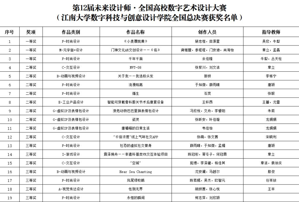 数创学子在第12届未来设计师·全国高校数字艺术设计大赛斩获佳绩